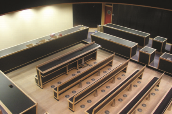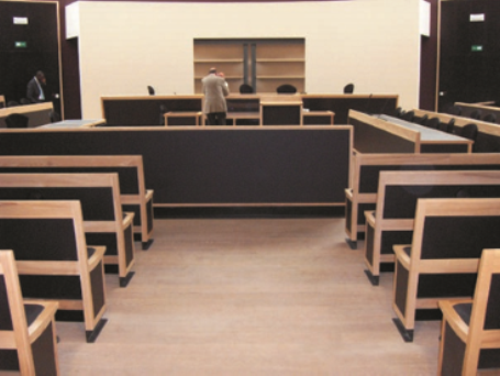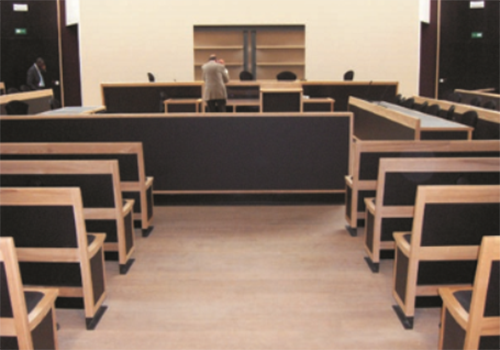 Les principales juridictions se localisent perpendiculairement à cet axe et sont reliées par des passerelles de liaison qui franchissent la « salle des pas perdus ». Une séparation claire a été aménagée entre les circulations publiques et celles réservées aux magistrats.