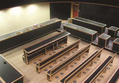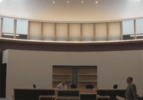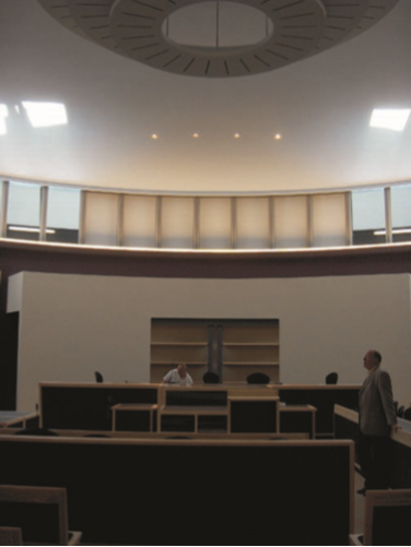 La salle de la cour d’assises, l’une des principales du site dispose d’un système de distribution de la lumière naturelle vers le plafond par le biais de miroirs. La cour d’appel, tout aussi importante, dispose d’un éclairage zénithal. Ces deux cours offrent donc des ambiances lumineuses différentes et bien particulières.