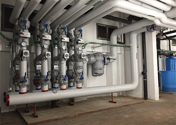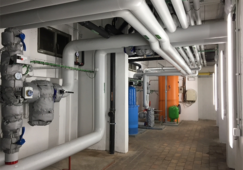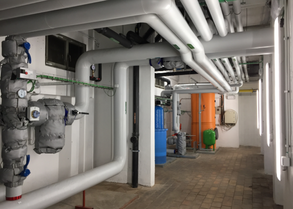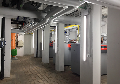 Nous avons regroupé les deux chaufferies en une seule située au sous-sol du bâtiment Meiboom. Nous avons remplacé les sept chaudières existantes initialement par 3 chaudières gaz à condensation et une production d’eau chaude sanitaire centralisée de type semi-instantanée.